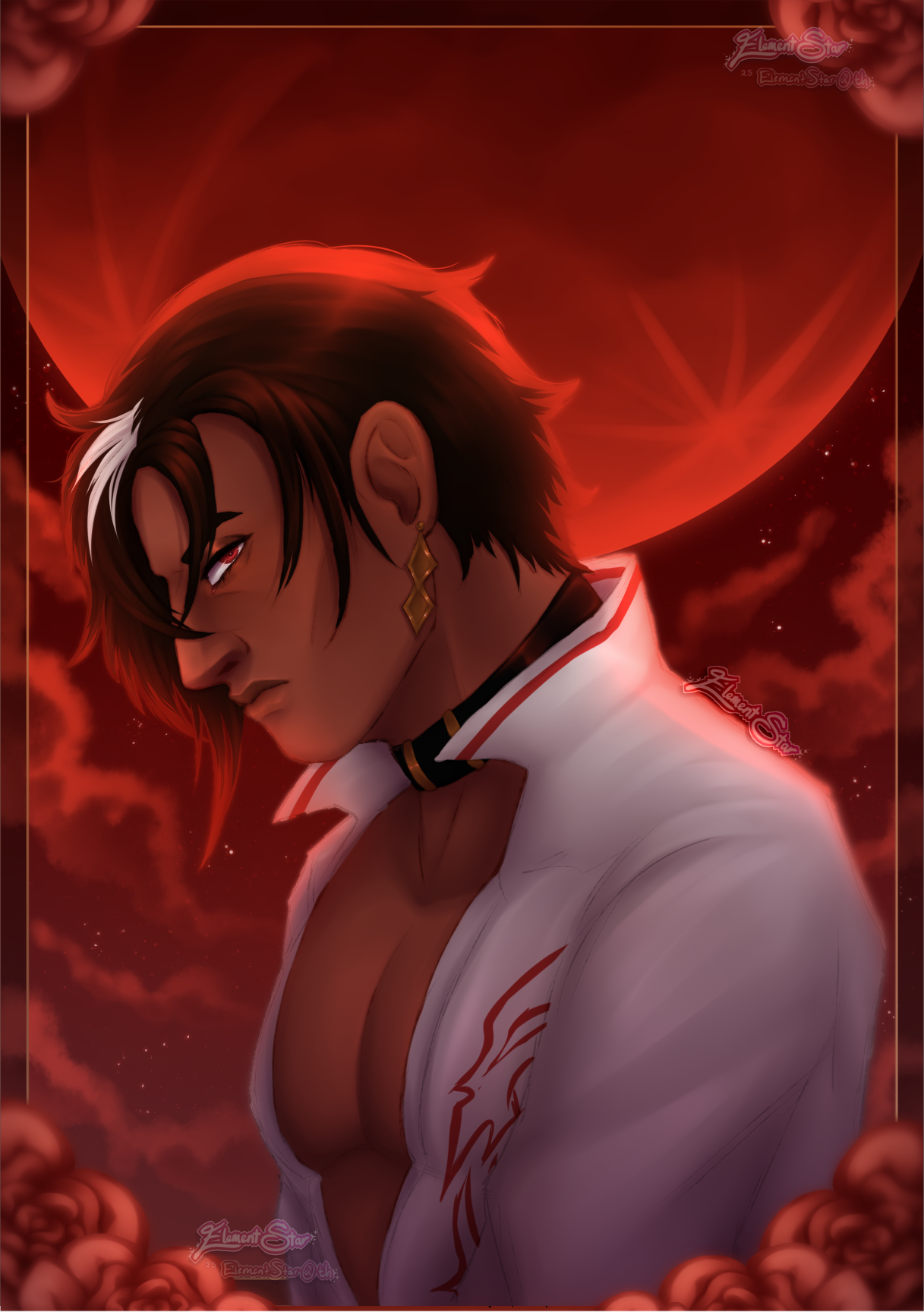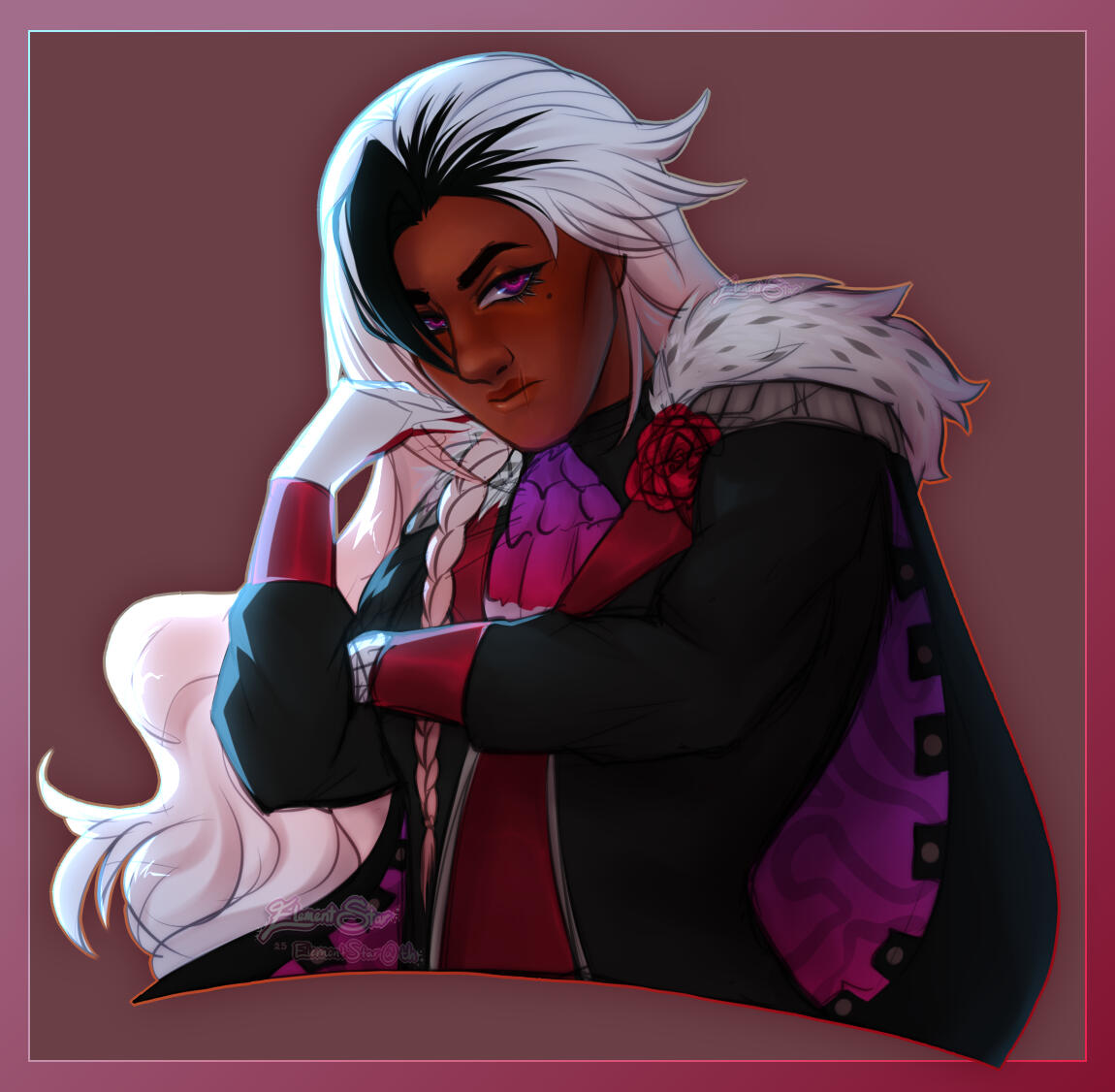 "ElementStar" or "Ele" is an artist who primarily works digitally. They began working digitally in 2012 with a mouse and trackpad, moving to tablets in 2013. Ever since, Ele has been invested in exploring the digital medium and learning new techniques. Ele incorporates much of her upbringing and personal experiences into her artwork and storytelling, aiming to share their own perspective as an LGBTQIA+, neurodivergent, and mixed Ashkenazi artist.